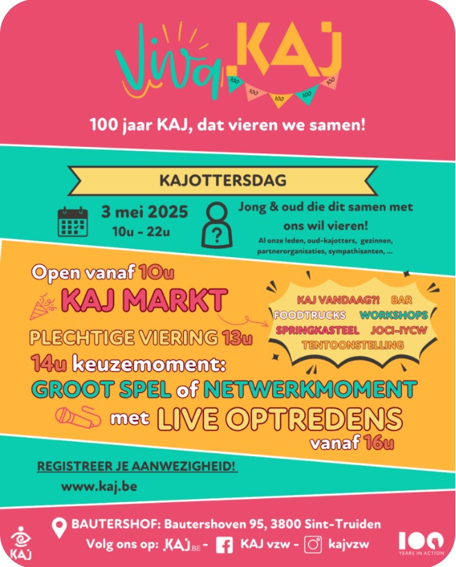 We will be meeting in Belgium, where this wonderful story of organising, raising awareness of young people started. With the participation of activists of the Belgian and European YCW movement and various action networks, we will all be there between the 1st of May (workers' day) and the 12th, giving more life and projecting our future. Young and old, social movements and trade unions, brothers and sisters in their origins and mission, institutions and political representatives or multiple authorities who agree with our objectives of social change, all together, building dreams and utopias!