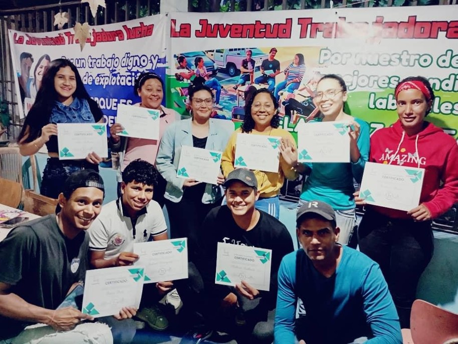 Buscaron apoyo en organizaciones amigas donde participan antigu@s jocistas y otros adultos aliados (Centro de Formación Guayana y la Corriente Revolucionaria David Hernández Oduber) para construir y facilitar el programa de formación en DDHH Laborales.