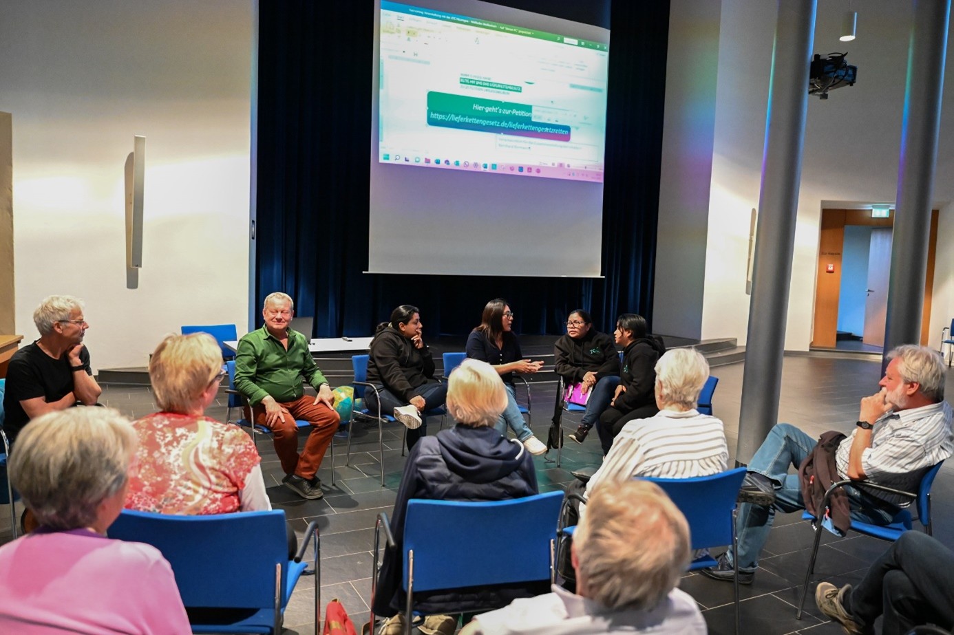 A pesar de la apretada agenda en torno al centenario de la JOC, las tres delegadas de la JOC Nicaragua realizaron una visita a Alemania tras las celebraciones. Querían aprovechar la ocasión para dar a conocer la realidad de los/as trabajadores/as en Nicaragua y las actividades de la JOC. Fueron invitadas por la Weltladen Weißenhorn. Las tiendas de comercio justo son tiendas que promueven relaciones comerciales más equitativas entre los productores del Sur y los consumidores del Norte. Durante una interesante velada-debate sobre la legislación europea relativa a la cadena de suministro, también se abordaron las consecuencias de la política arancelaria de Trump en nuestros países.
