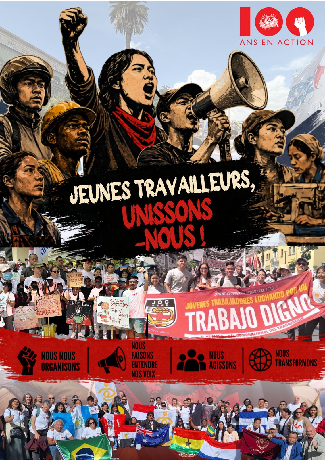 En ce 1er mai, Journée internationale des travailleurs et travailleuses, nous, les jeunes de la Jeunesse Ouvrière Chrétienne Internationale (JOCI/IYCW), élevons nos voix ensemble à travers le monde.